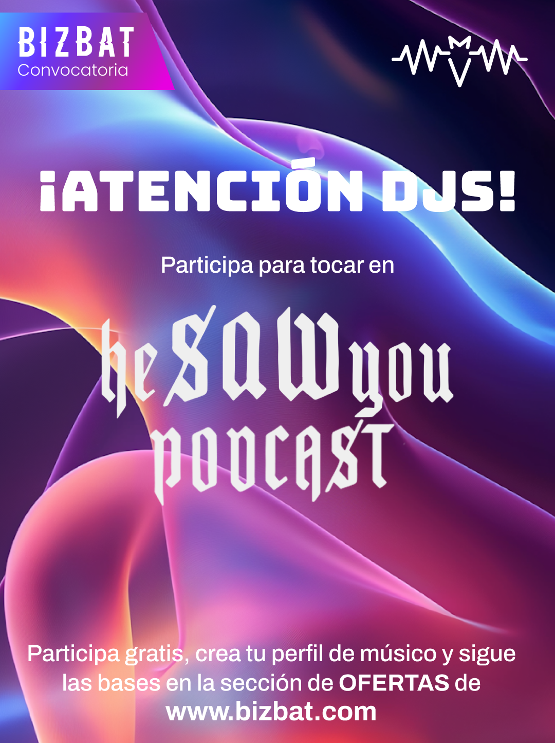 ¡Atención DJs y productores de música electrónica! heSAWyou Podcast llega a BizBat para invitarte a que tu música sea parte de una sesión en vivo. heSAWyou Podcast es un espacio audiovisual creado para capturar sesiones únicas de DJs de todo el mundo, con una propuesta que se aleja de lo predecible y busca siempre un carácter auténtico y profundo.