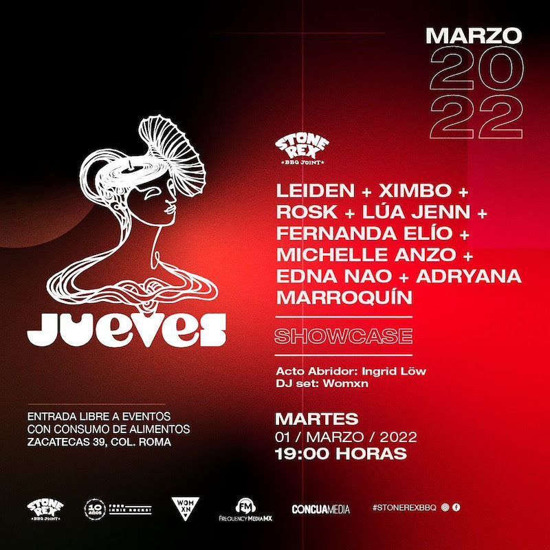 Con el objetivo de mostrar todo el talento que estará reunido en un solo espacio las cantantes y compositoras que forman parte de este increíble proyecto: Leiden, Ximbo, Rosk, Lúa Jenn, Fernanda Elío, Michelle Anzo, Edna Nao y Adryana Marroquín mostrarán sus habilidades en el micrófono.